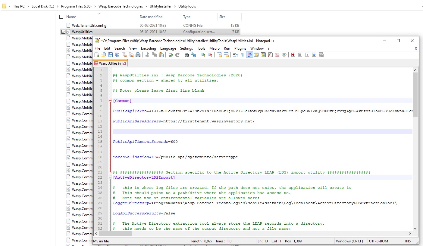 Note: When editing the .ini file to add the Token and make any other changes, we highly recommend Notepad++ or similar. Under most current versions of Windows 'normal' users will not have sufficient access rights to modify the .ini file directly. Notepad++ is a very safe and reliable way to edit this file.