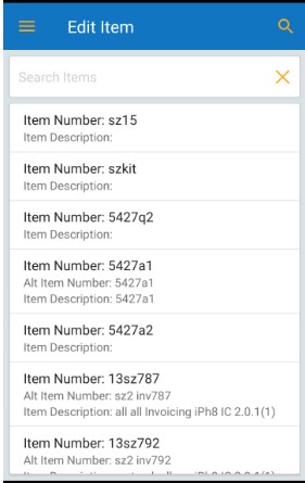 - The screen will navigate to the Edit Item - search screen that will display the list of items.