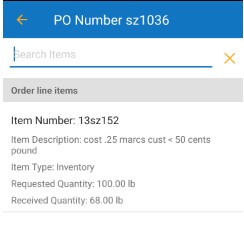 - Select the PO Number to navigate to a page displaying all the item numbers associated with that PO.