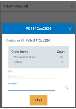 Note: The site will be read-only if you are receiving a site-specific purchase order, and the location field will only display the locations associated with that particular site.