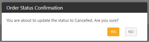 - On clicking Cancel Order, an order status confirmation will appear. Click Yes to continue.