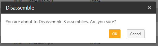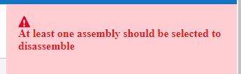 Note: If you click on Disassemble without selecting any assembly, a message "At least one assembly should be selected to disassemble" will appear.