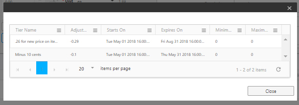 - You can click on the View Price Tiers link to view the price tiers.