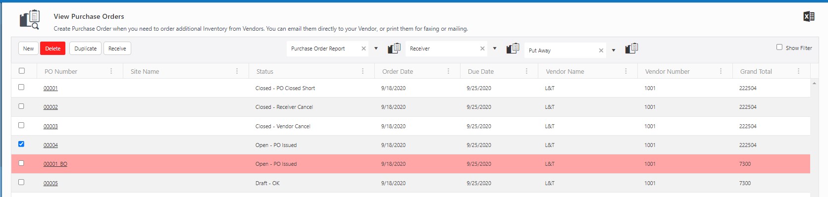 You can quickly duplicate a purchase order from the View Purchase Orders screen.