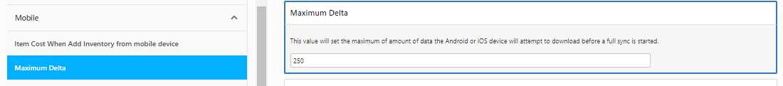 For example: consider that you entered the value 250, this indicates that each time the mobile device (Android or iOS) requests a download from the web, it will see how much data has been created since the last download was performed. If the data created is equal to or less than 250, then a small download is performed for the new data alone, and If it is more than 250 then a full download will occur.