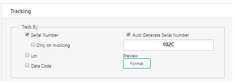 - When you click on the Serial Number checkbox, a text box will appear below Auto Generate Serial Number. Click on the Auto Generate Serial Number checkbox to generate the serial number automatically. Click on the Format button to format the serial number in the Settings > Number Series screen.