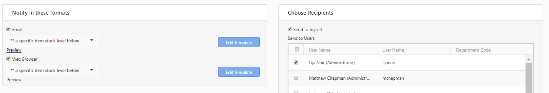 - Click on the checkbox to notify the user in the format you want. Also, choose the recipients.