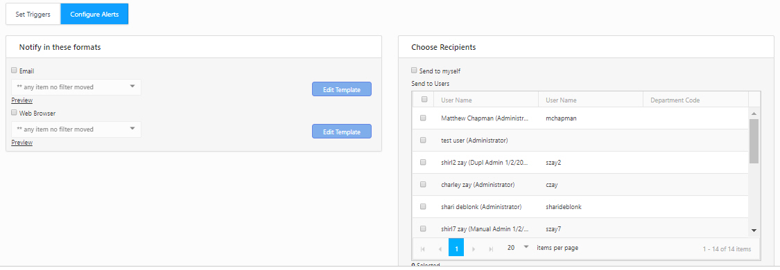 - To set up triggers, click on the Set Triggers tab and to configure alerts, click on the Configure Alerts tab.