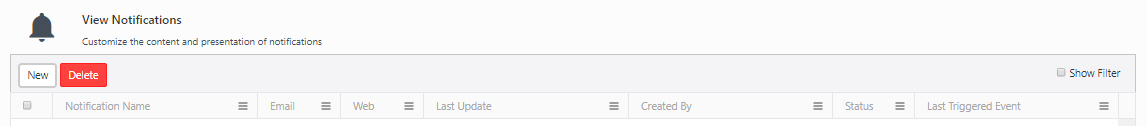 On the Notifications List, select the Notification(s) you want to delete, then click on the Delete button.