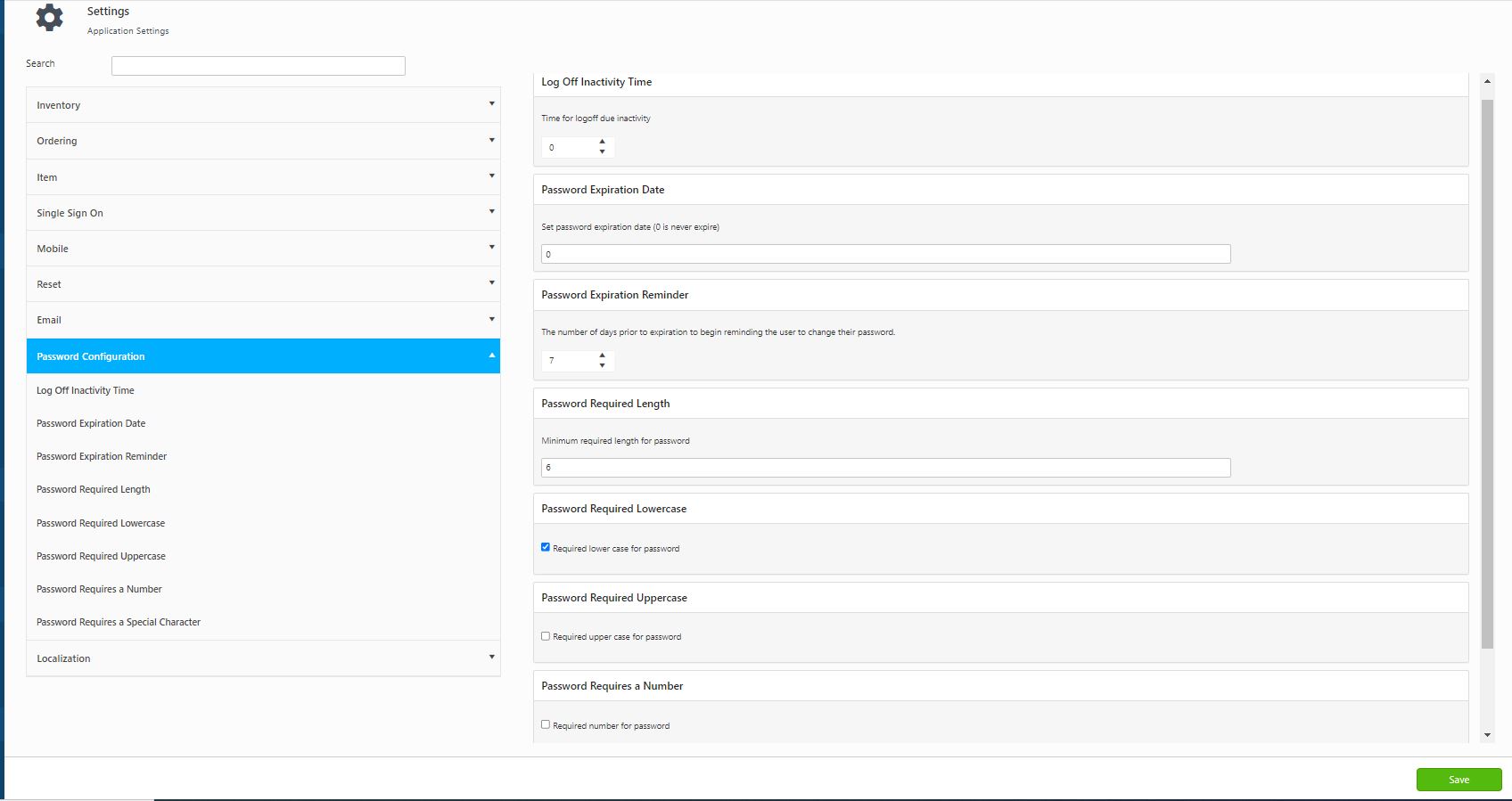 This section allows you to customize password requirements. Click on the Settings > Password Configuration.