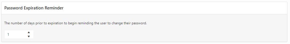Example - Setting to 7 means it will remind the user, starting at 7 days before the password expires. If Password Expiration and Reminder is set to 7, the initial notification will show “Your password will expire in < 7 days“.