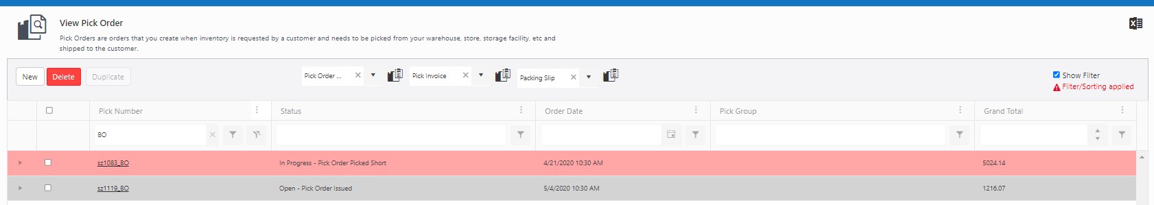- Close and Create Backorder - The pick order will get closed, and a backorder will be created. Note that only the pick order with a quantity less than ordered can be closed.