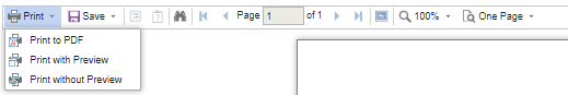 - To print the report, click on the Print button. There are three options - Print to PDF, Print with Preview and Print without Preview.