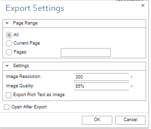 The Recommended setting values are - Image Resolution = 300dpi (or greater) and Image Quality = 75% (or greater).
