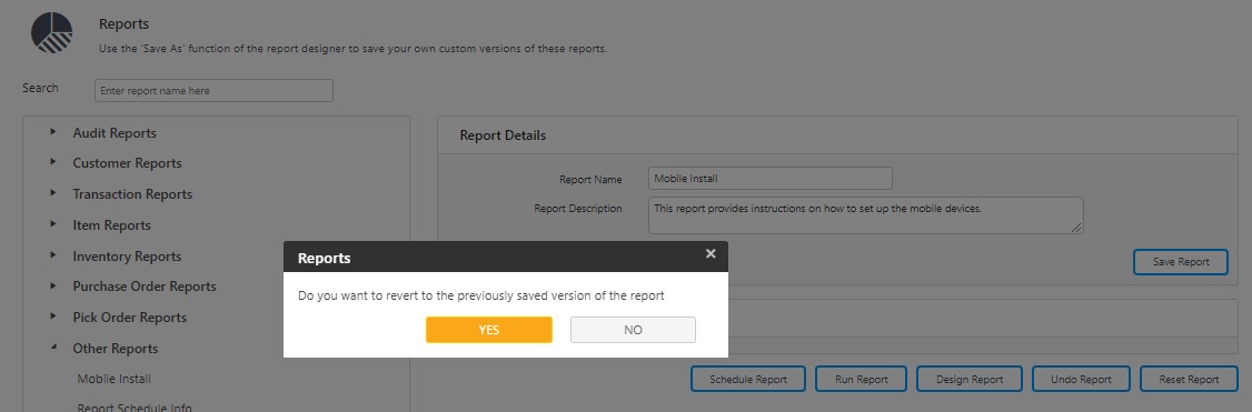 - A message will appear asking the user if they want to revert to the previously saved version of the report. Click on the Yes button.
