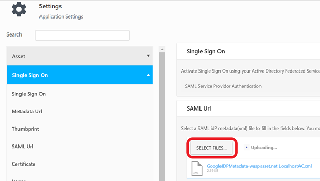 Click on the Select File button to browse the Metadata file downloaded from the ADFS Server and upload it.