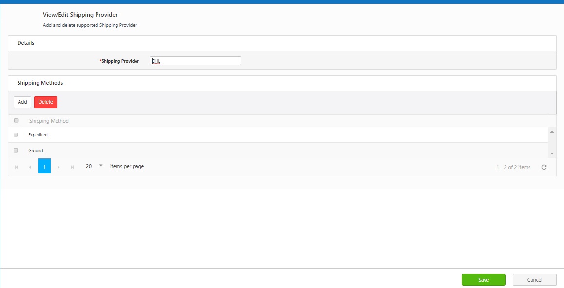 - Delete - The delete button allows you to delete shipping providers. Refer to the topic Delete a Shipping Provider.