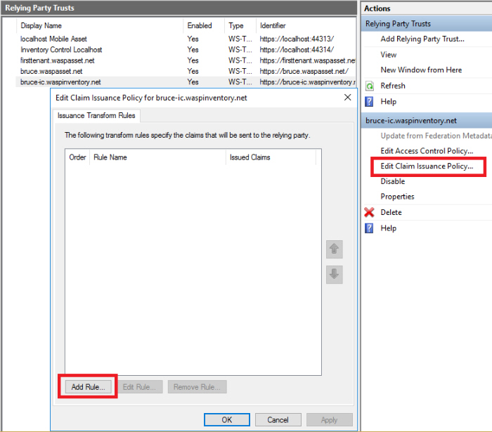 - Group - During Validation and login ADFS (given the above claim configuration) returns a list of group names. The Wasp users role must exactly match one of the groups returned by ADFS. Otherwise Validation, registration and login will fail.