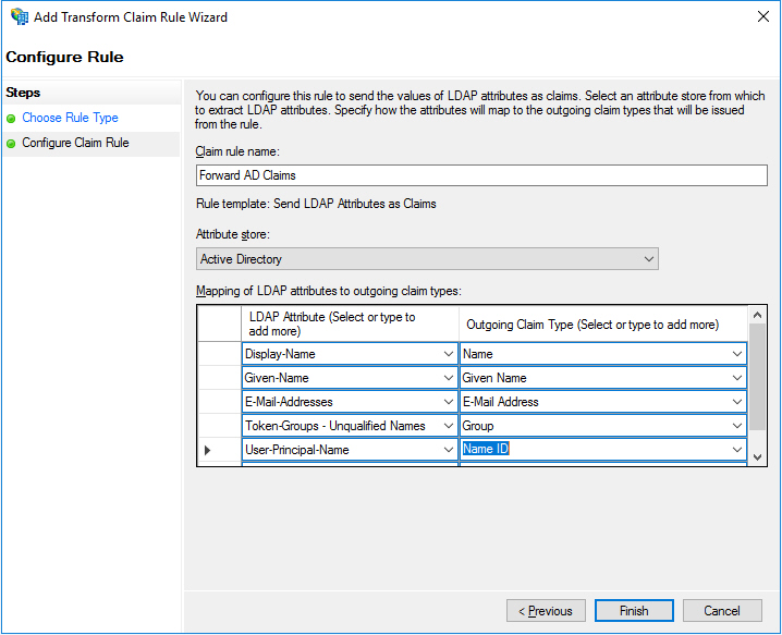 - Accept Send LDAP Attributes as Claims, Hit on the Next button.