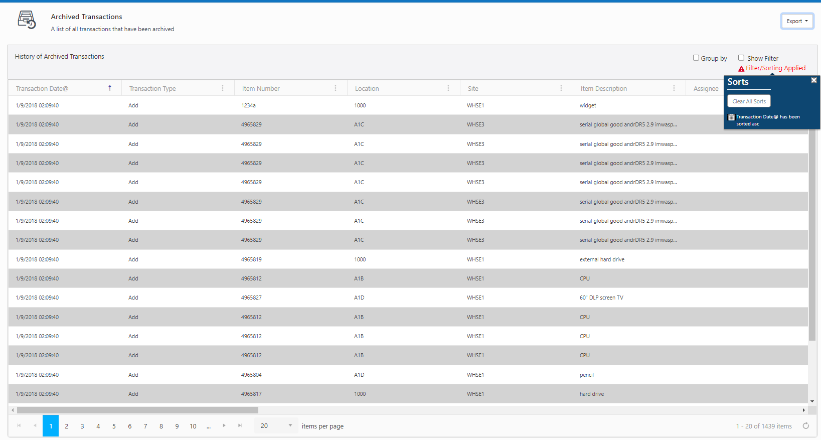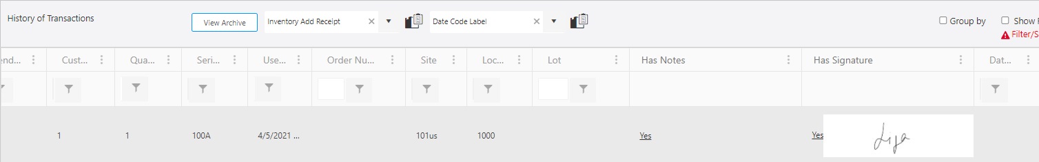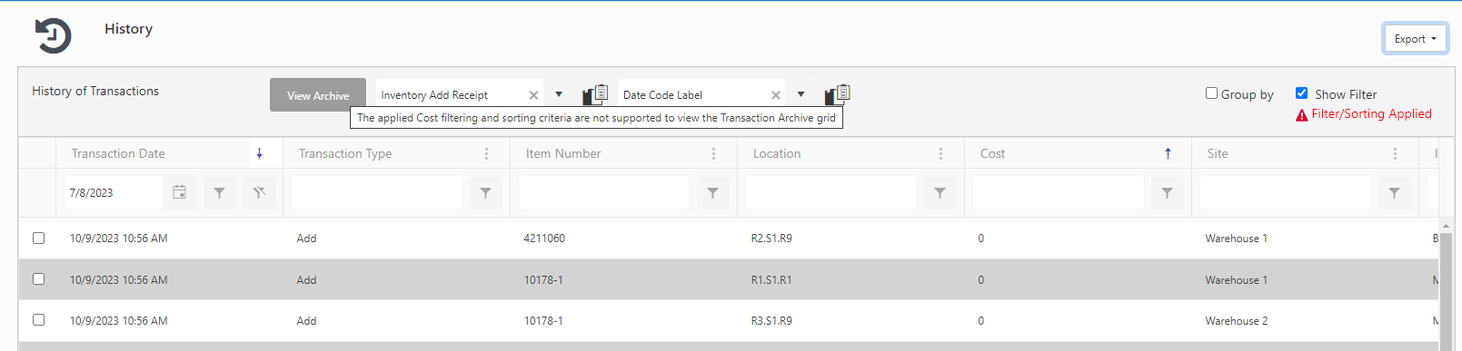 - The button will only become active if the sorting and filtering fields currently applied in the transaction grid are all supported by the Archive grid.