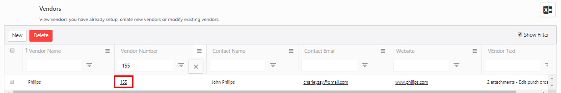 - Delete - The delete button allows you to delete vendors. Refer to the topic Delete a Vendor.