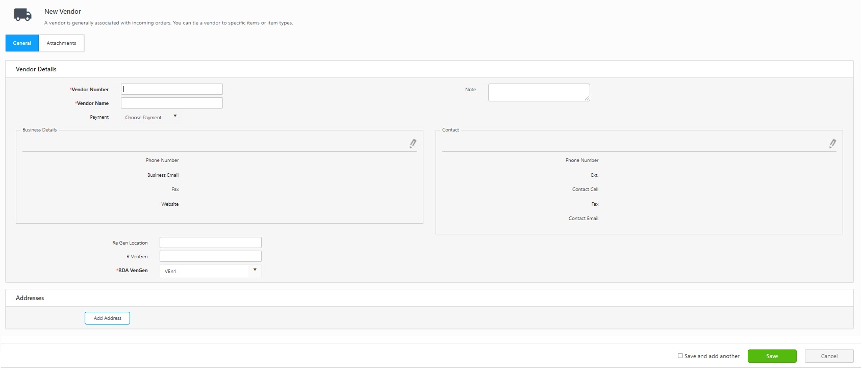 - Vendor Number - (Required) Enter a unique identifier for this vendor.