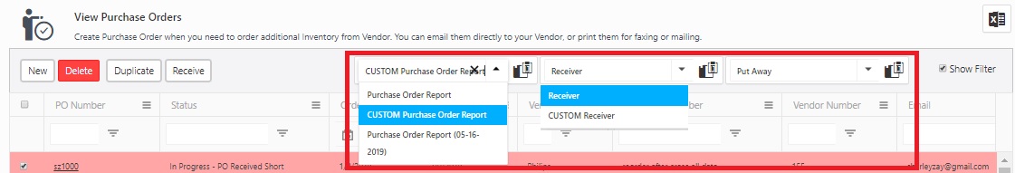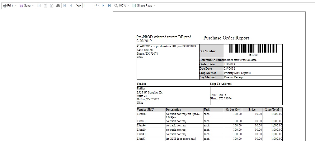 Preview of Purchase Order Report