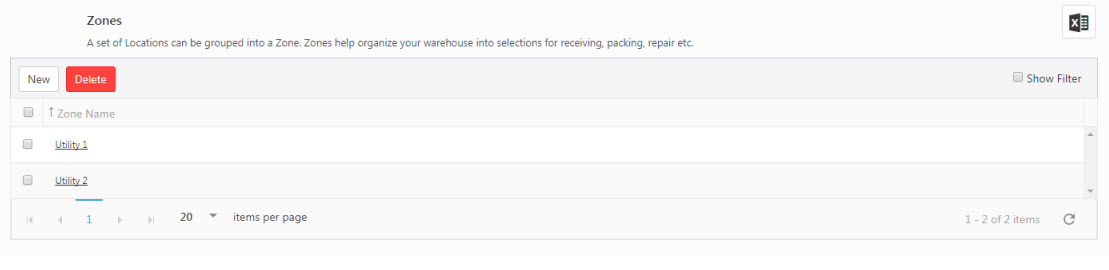 - New - Click on the New button to add a zone. Refer to the topic Add a Zone or New Zone.