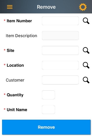 The Remove Inventory screen