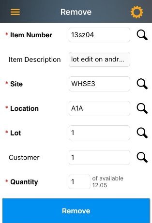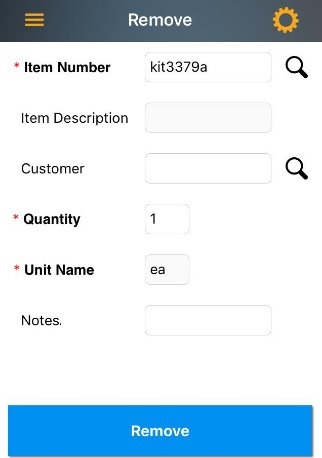 - Enter/scan the Item Number. The Item number
